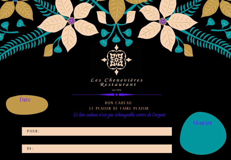 Choisissez le montant que vous souhaiter offrir, nos bons cadeaux sont disponibles à l'achat directement au restaurant.